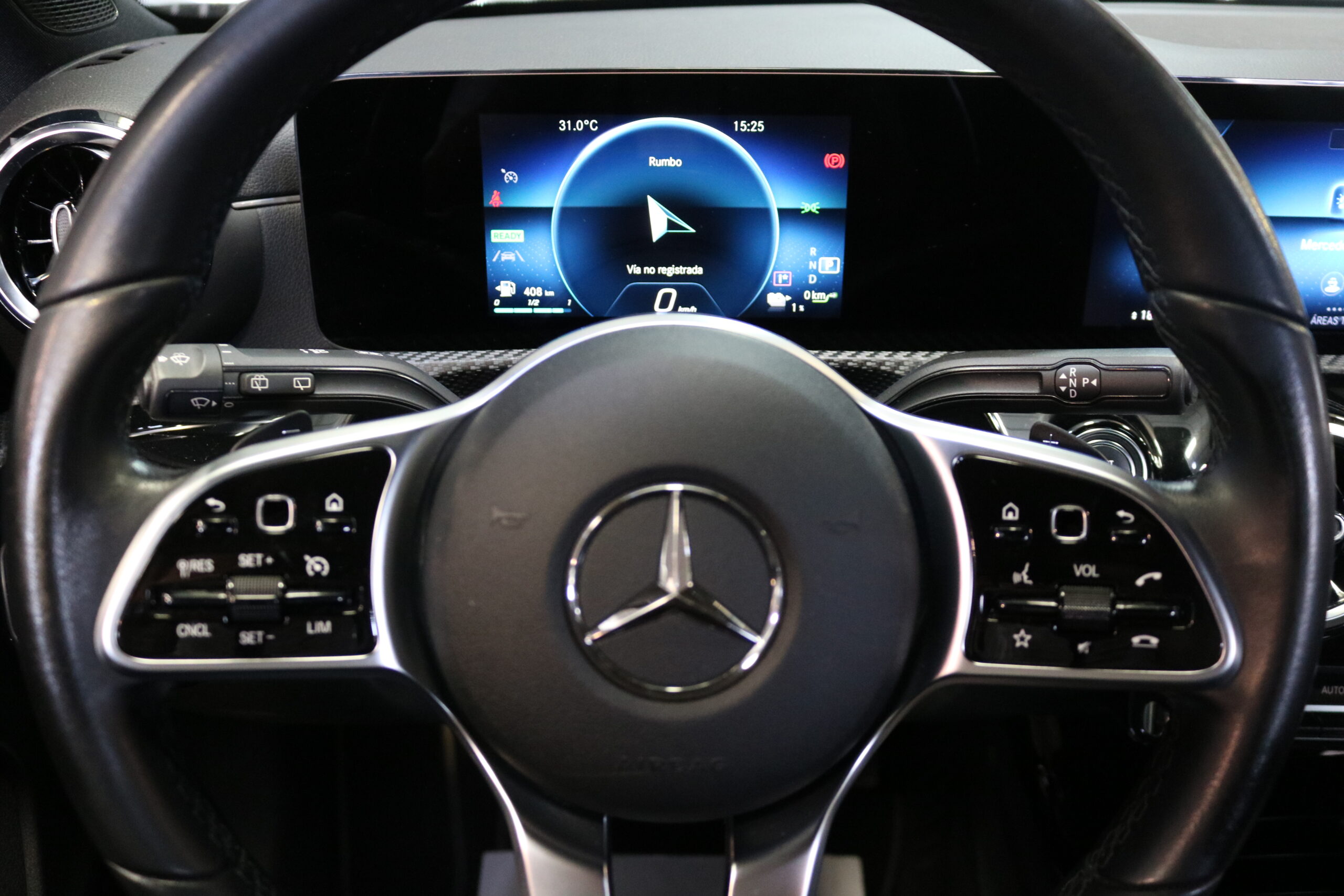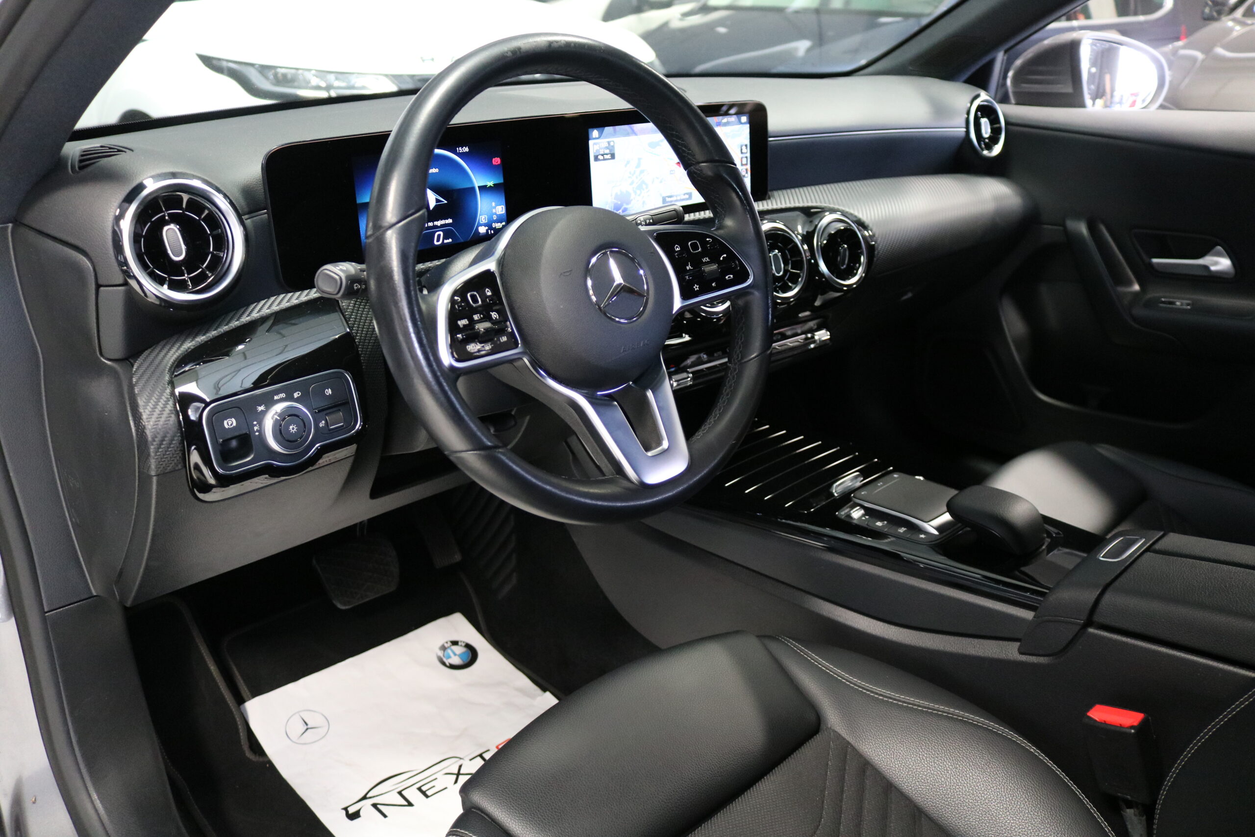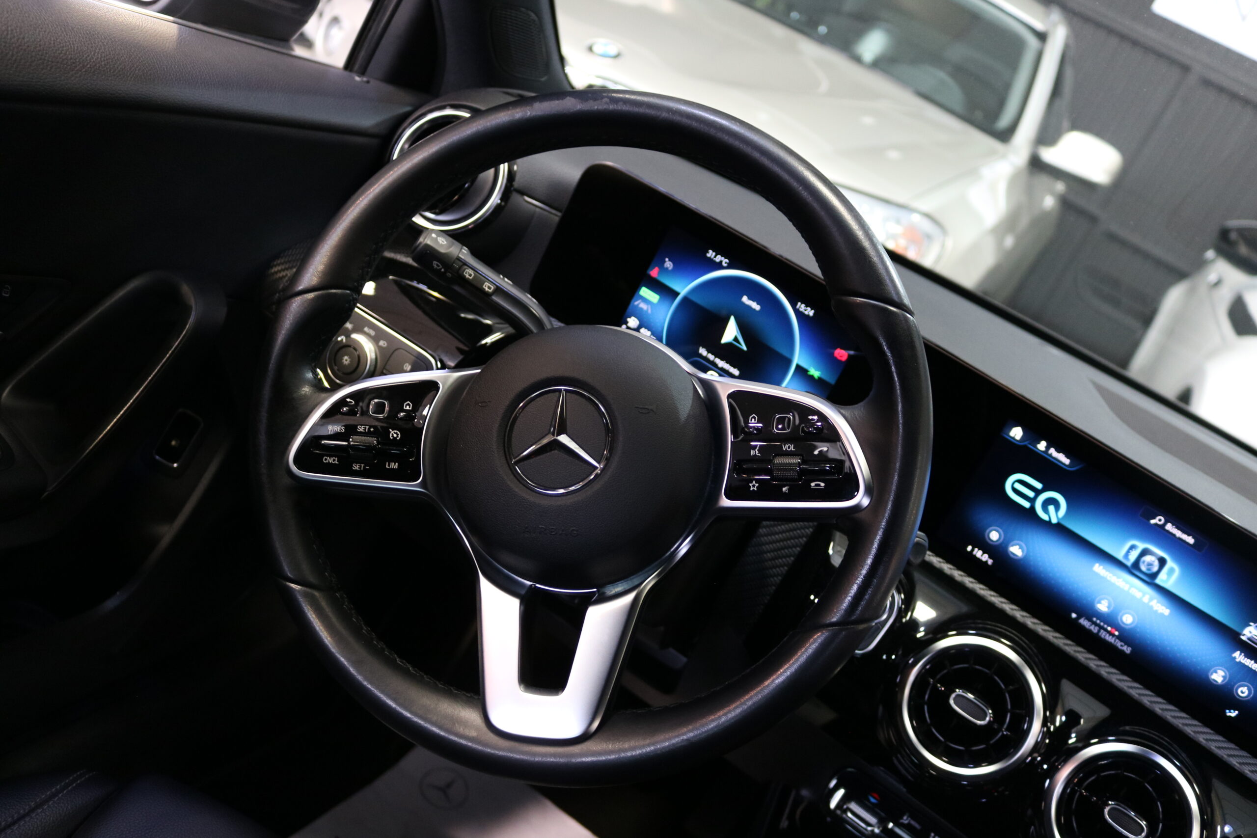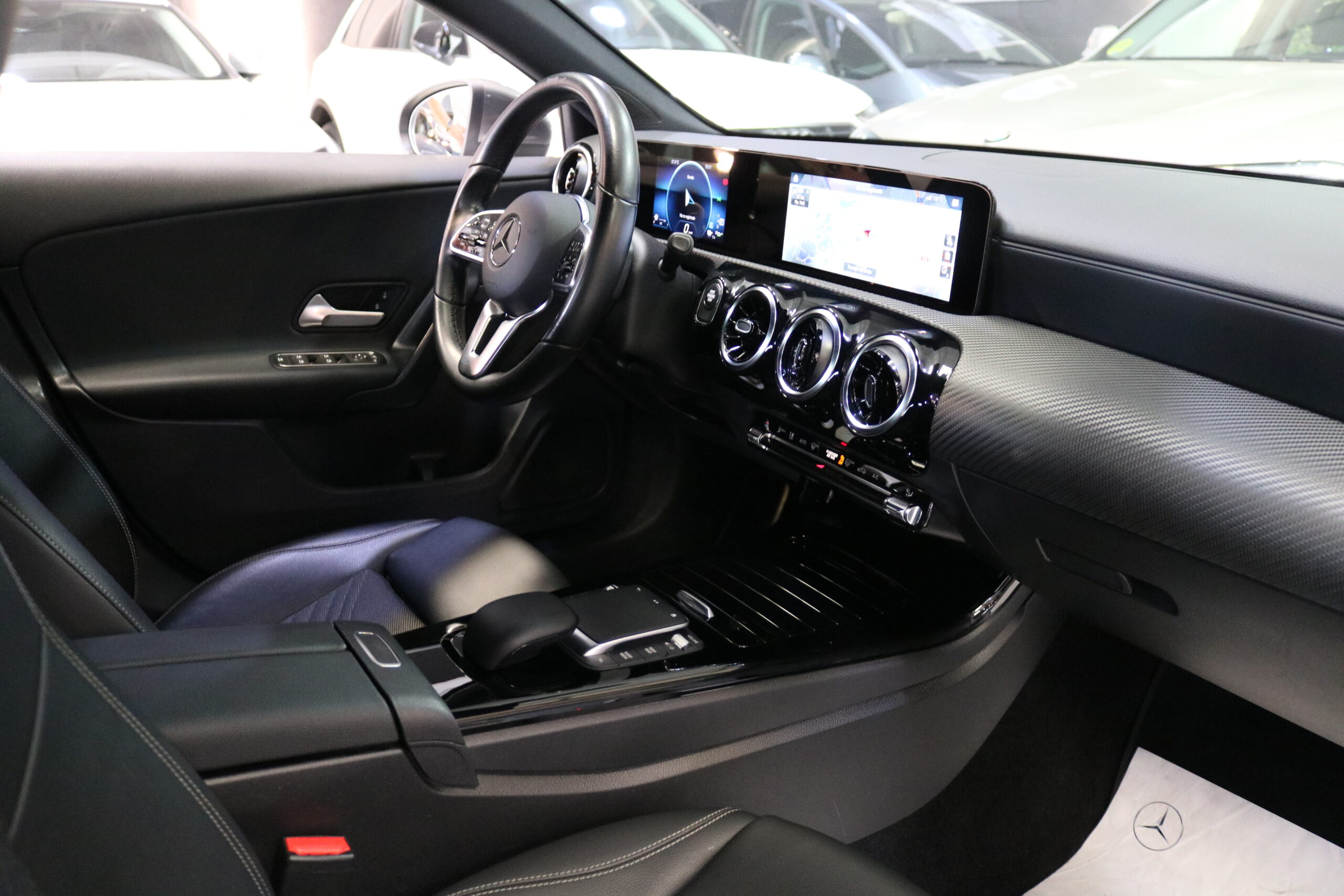 El interior de este vehículo ofrece una experiencia premium con asientos deportivos en símil de cuero ARTICO, iluminación ambiental de 64 colores y elegantes elementos decorativos en madera de tilo negro de poros abiertos. El sistema MBUX con innovaciones y navegación por disco duro proporciona una interfaz intuitiva y moderna.