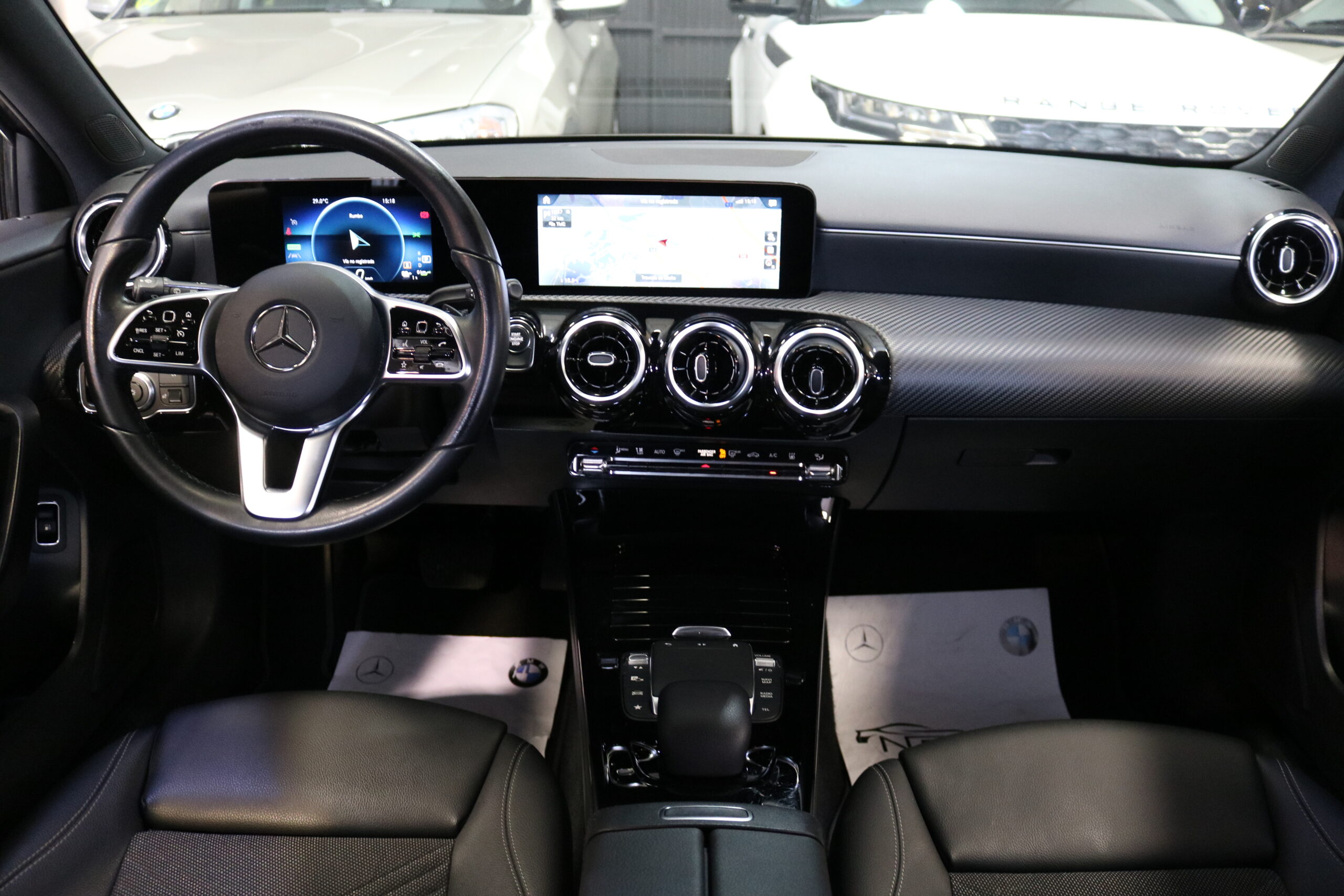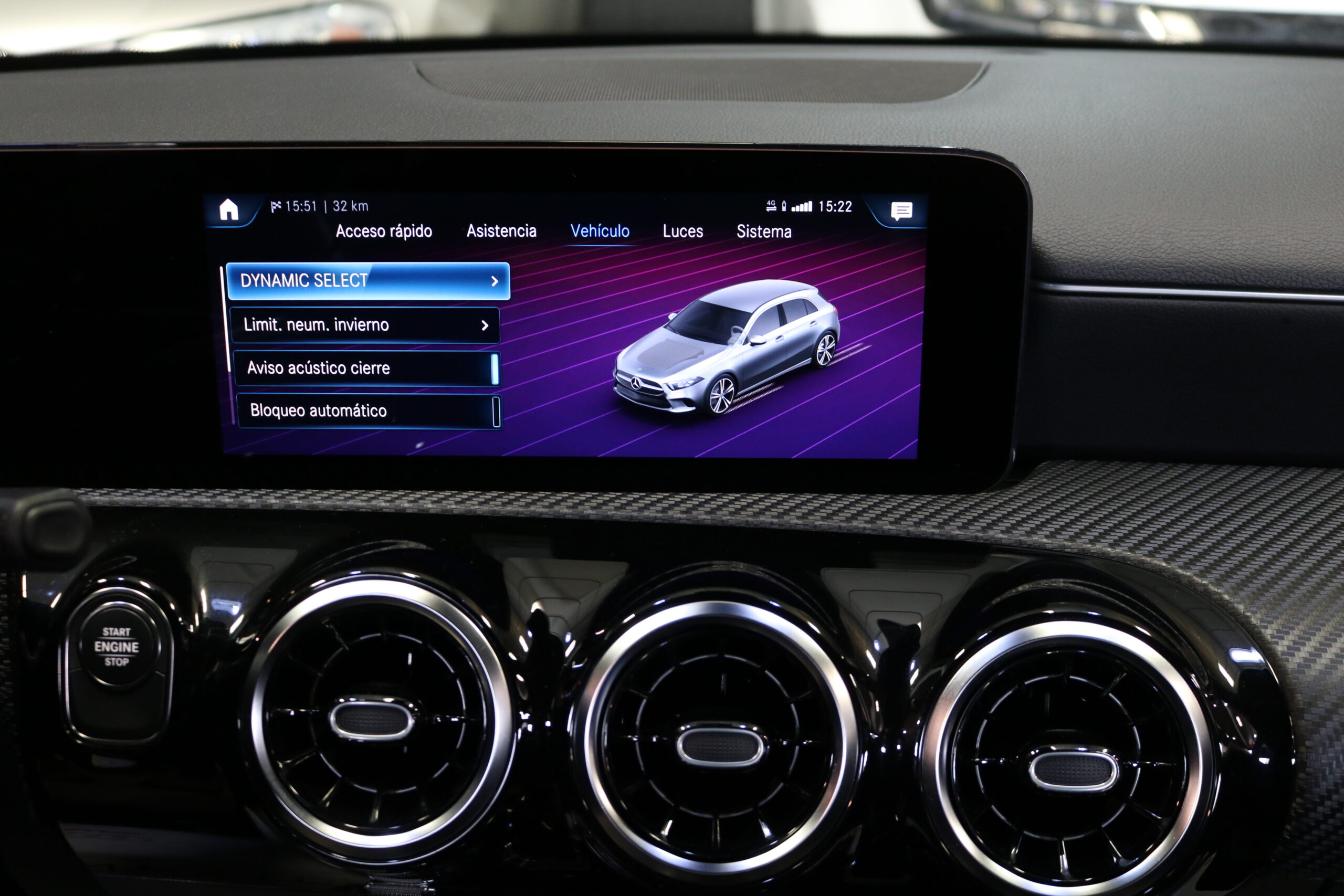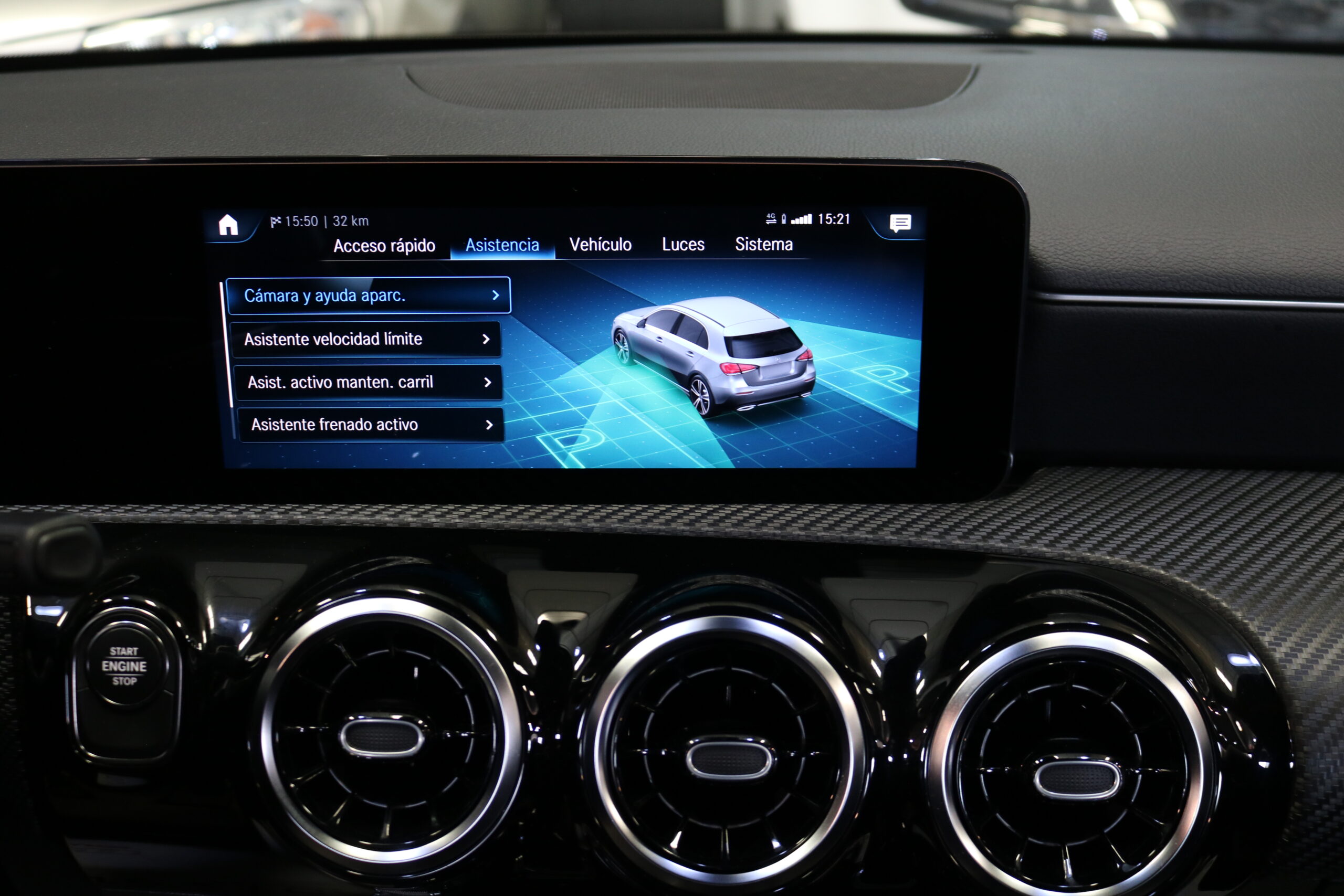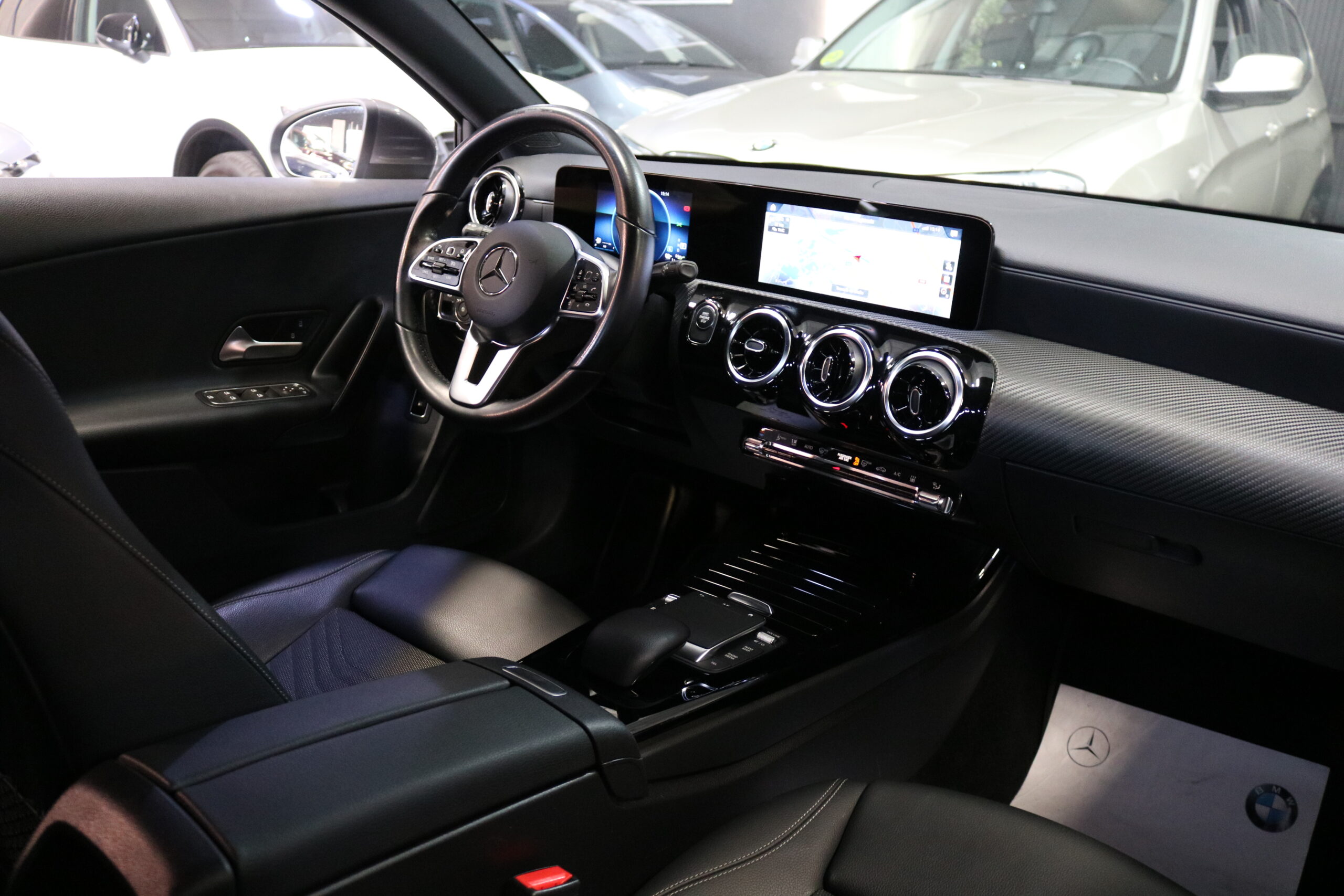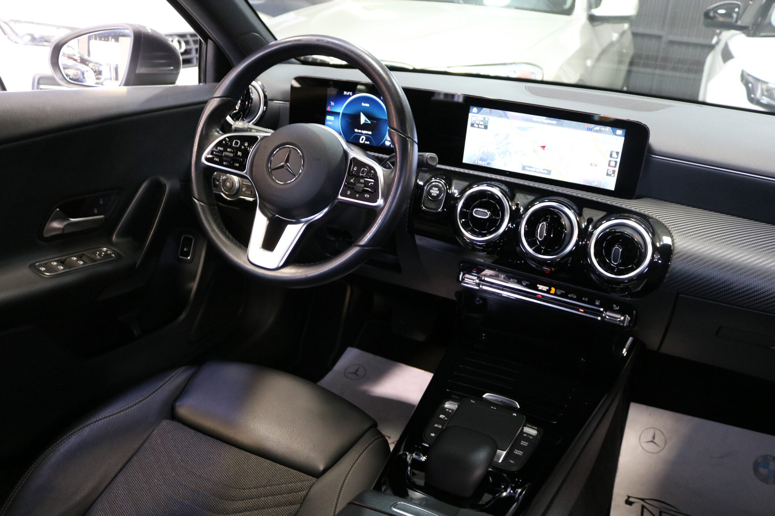 El interior de este vehículo ofrece una experiencia premium con asientos deportivos en símil de cuero ARTICO, iluminación ambiental de 64 colores y elegantes elementos decorativos en madera de tilo negro de poros abiertos. El sistema MBUX con innovaciones y navegación por disco duro proporciona una interfaz intuitiva y moderna.