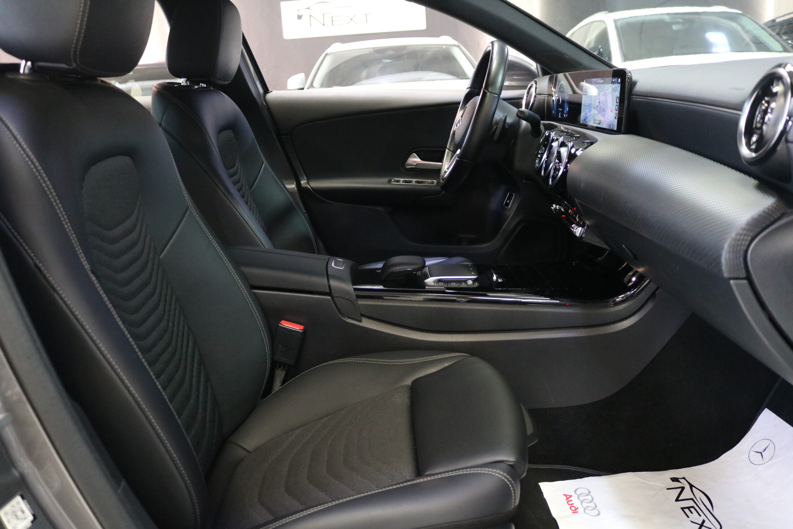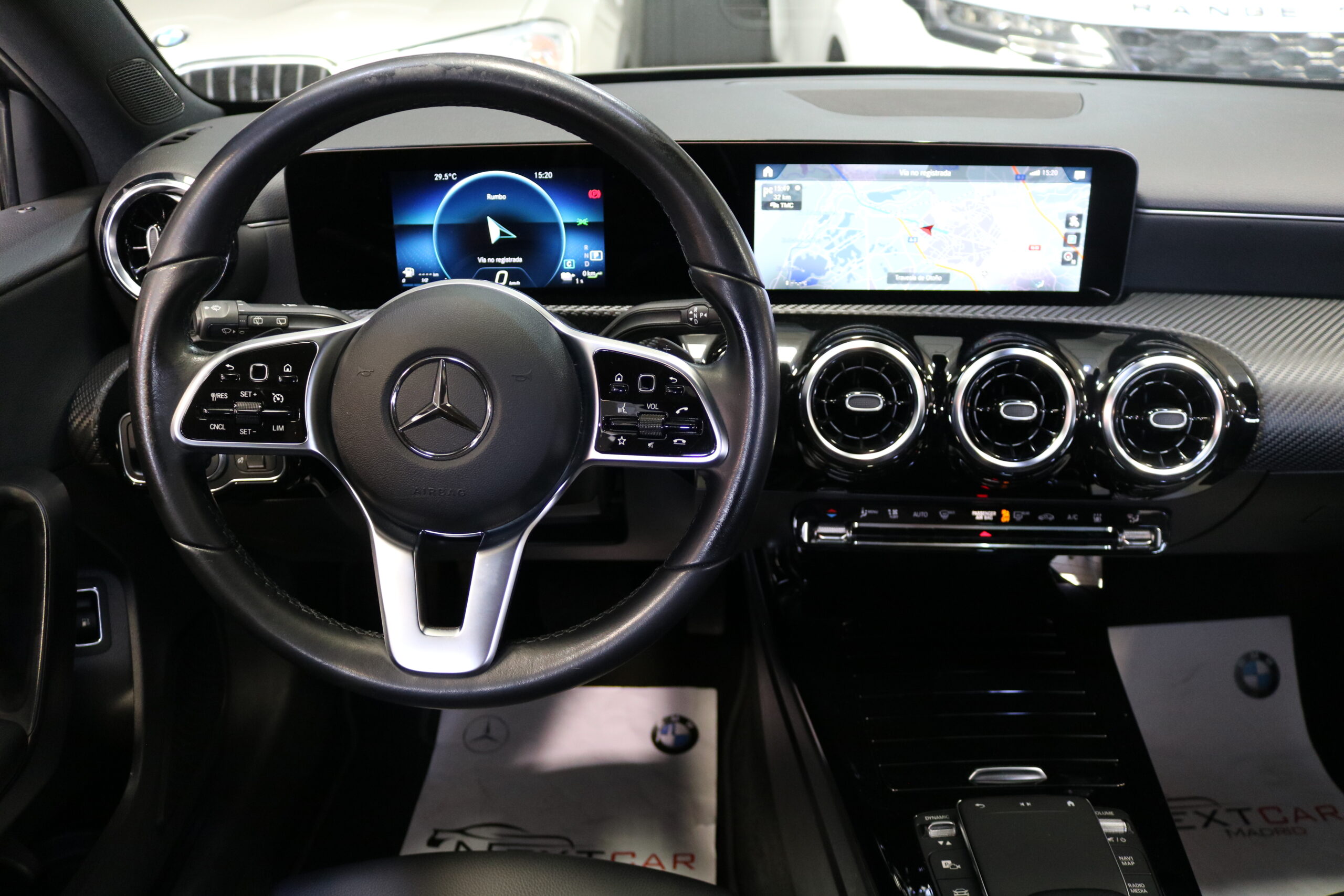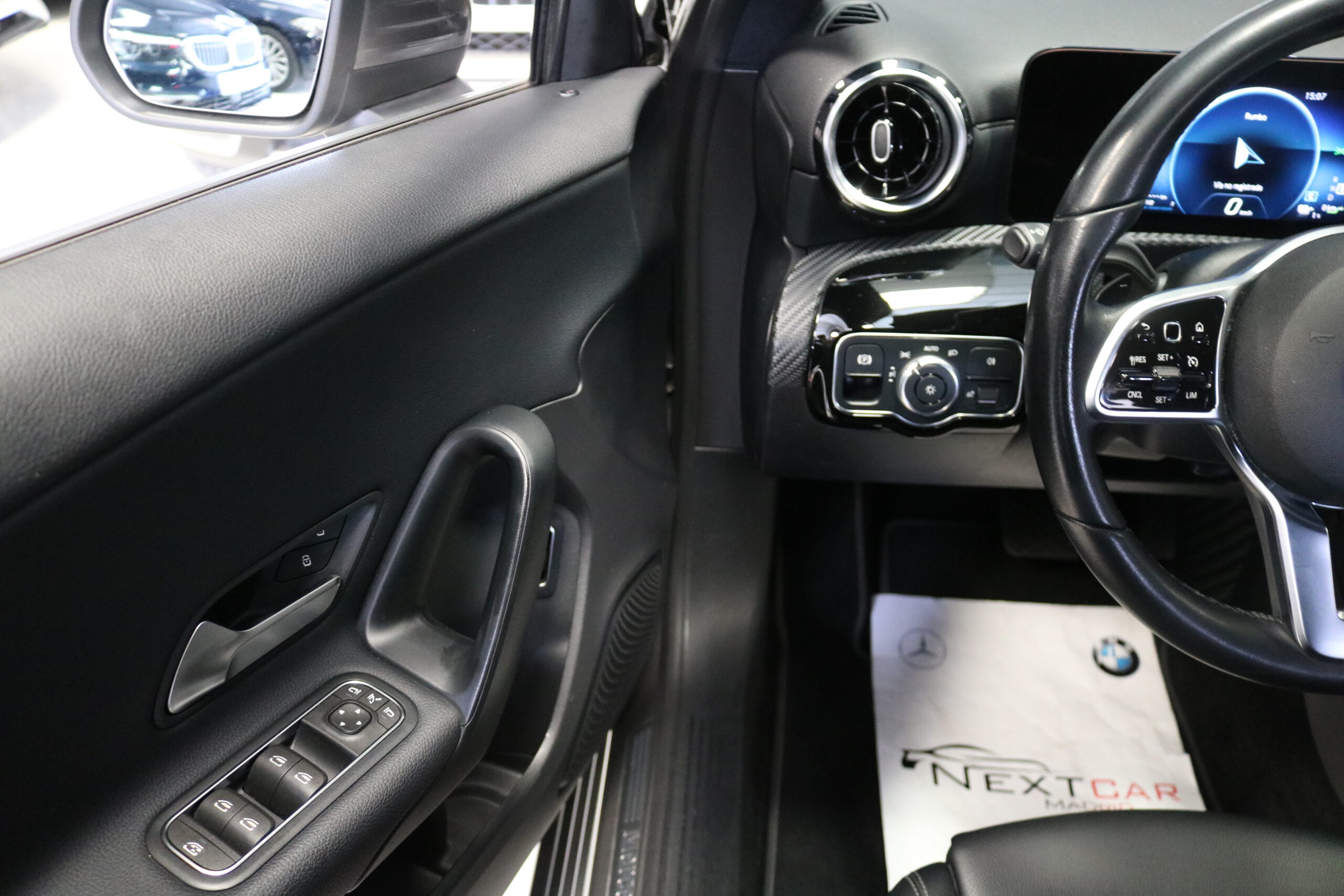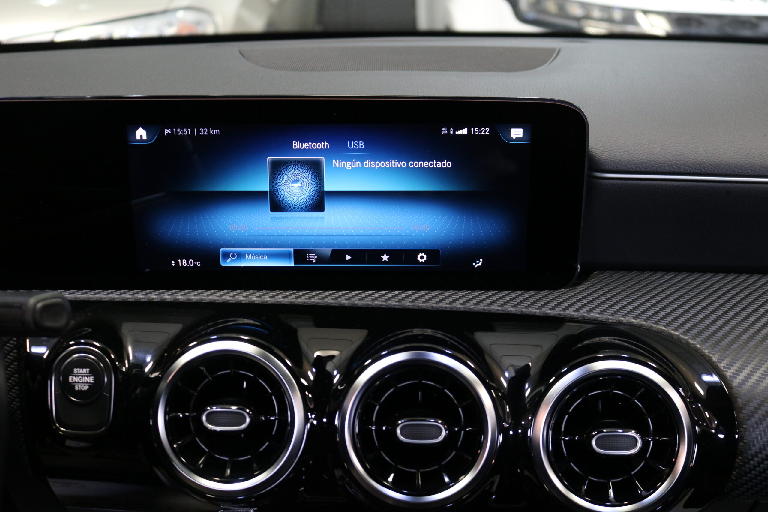 El interior de este vehículo ofrece una experiencia premium con asientos deportivos en símil de cuero ARTICO, iluminación ambiental de 64 colores y elegantes elementos decorativos en madera de tilo negro de poros abiertos. El sistema MBUX con innovaciones y navegación por disco duro proporciona una interfaz intuitiva y moderna.